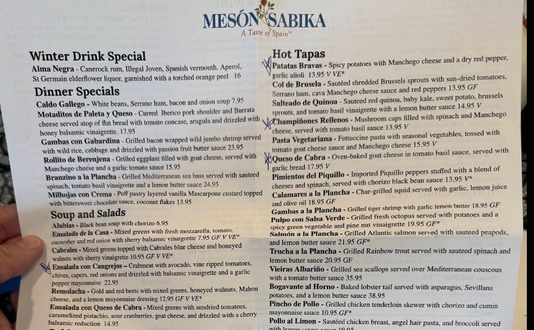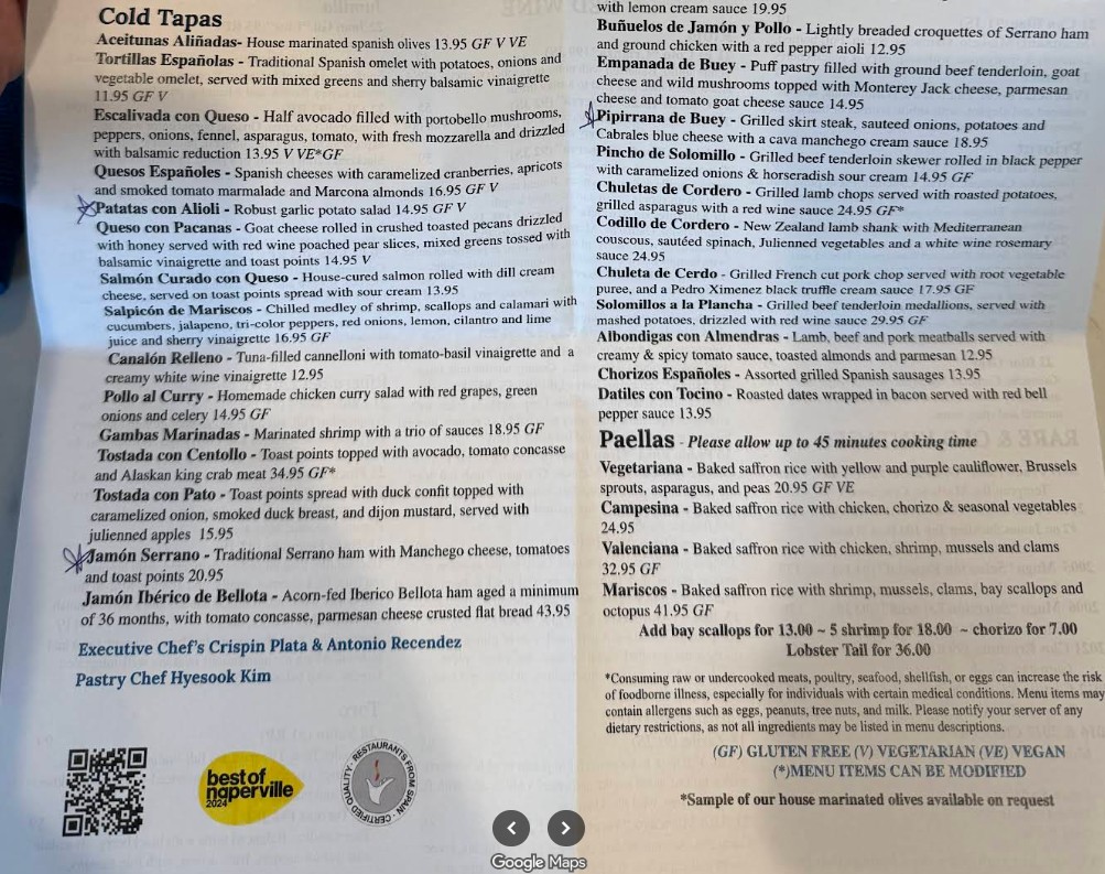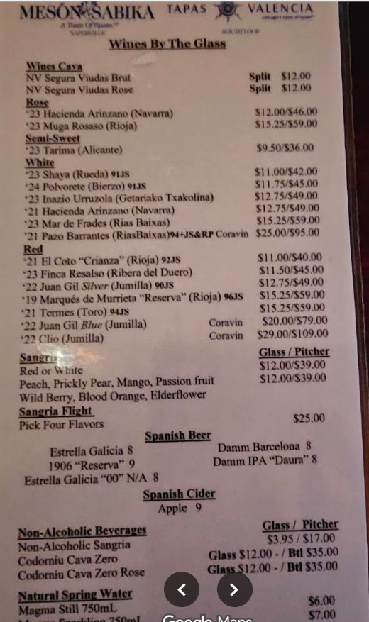 This was our first time at Meson Sabika in Naperville and our first experience trying tapas and it did not disappoint! The atmosphere is beautiful and perfect for a date night or special occasion. Our waitress was friendly, attentive, and very helpful in guiding us through the menu. I ordered the sangria flight (four varieties), and the portions were surprisingly generous and delicious. My husband had a mezcal Paloma and chose the Valentine’s Day prix fixe menu with three cold and three hot tapas. I selected two cold and two hot tapas from the regular menu, and we shared everything. Every dish was flavorful and beautifully presented, we left very full and satisfied! We ended the night with coffee and dessert, which was the perfect touch. We’re already planning to return when it’s warmer to enjoy the outdoor patio. Highly recommend!
